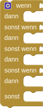 | 08:53, 21. Feb. 2024 | Blockly If Elif Elif Elif Else.png (Datei) | 32 KB | Sn (Diskussion | Beiträge) | Wenn-Dann-Sonst-Blöcke im AppInventor können beliebig kompliziert gestaltet werden. | 1 | |